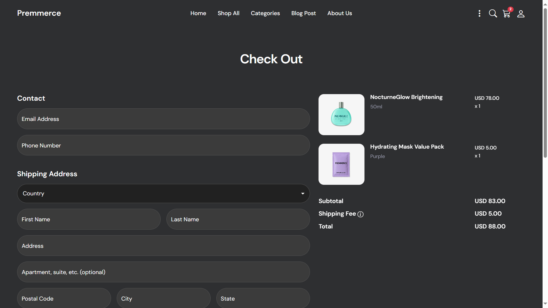 - Total amount (excluding shipping fee because it will be calculated on the checkout page)