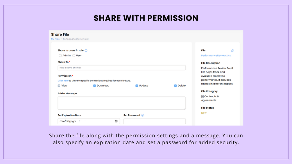 - Set Create, View, Update, Delete, Download permissions