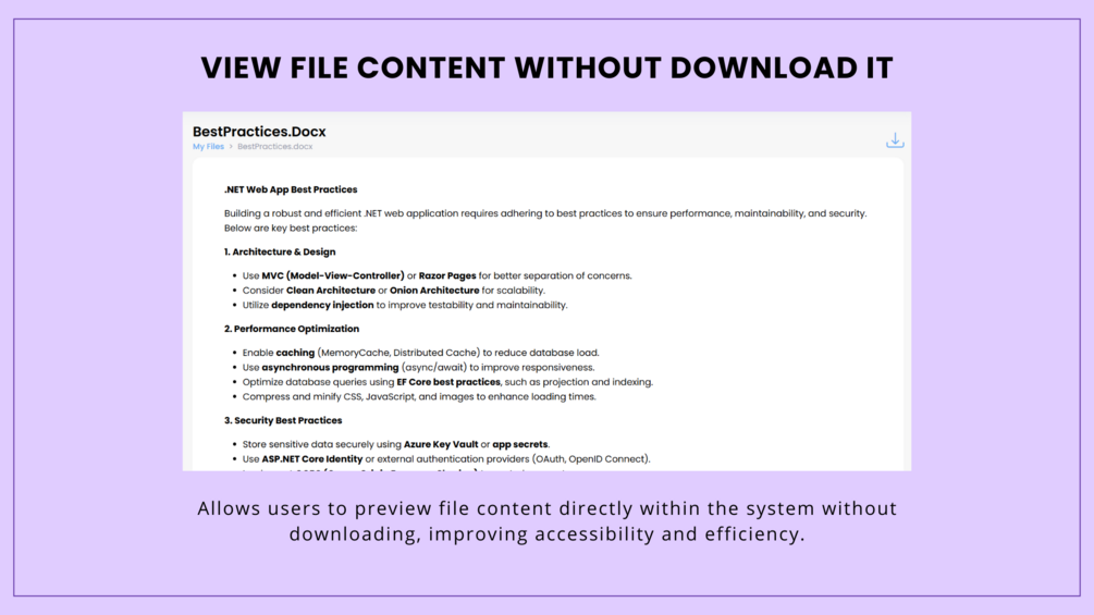 - Online file viewer for word document, image, excel, txt, audio and video.