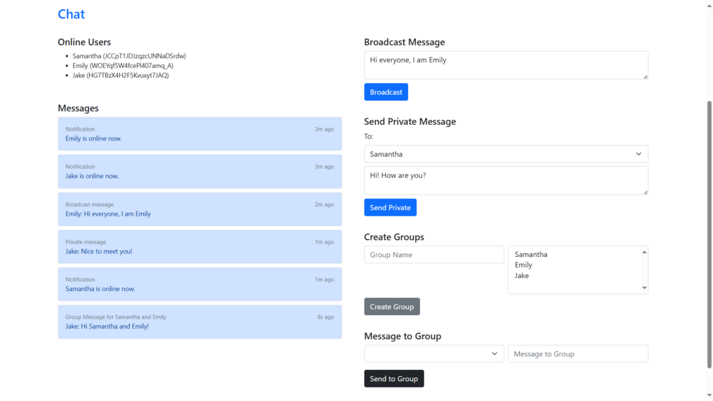 • 👤 Add user - Enter a name and click register button to start the chat