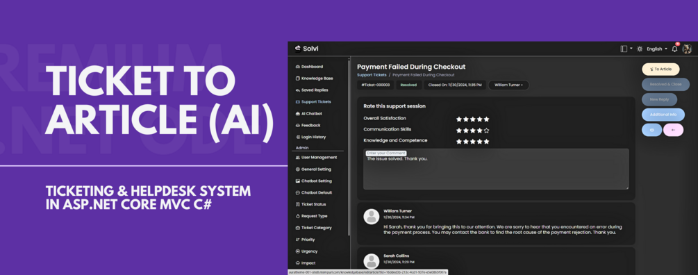 Solvi: Help Desk Ticketing System Asp.Net Core Mvc C# with OpenAI API